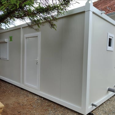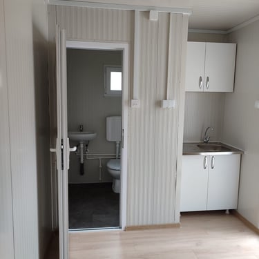 Naši građevinski kontejneri služe kao kancelarije, magacini ili prostori za odmor na gradilištima, dok su sanitarni kontejneri opremljeni za potrebe higijene – uključujući toalete, tuševe i umivaonike, sa modernim instalacijama.